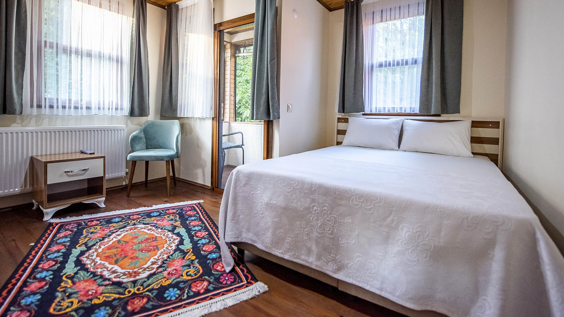 Ceviz Apart 1 yatak odası, 1 salon, Alt ve üst katlarda banyo ve balkonu mevcuttur.