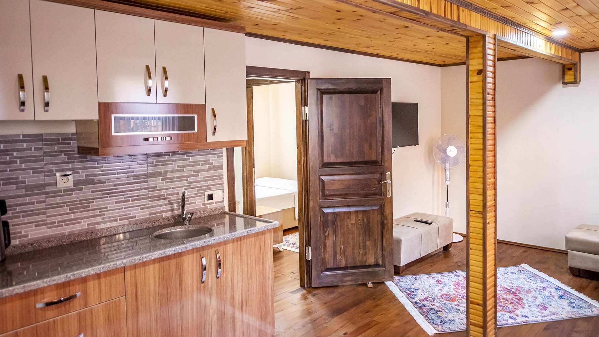 Kayın Apart çift katlı olup 3 oda, 1 salon, Alt ve üst katlarda banyo, bağımsız kamelya ve balkonu mevcuttur.
